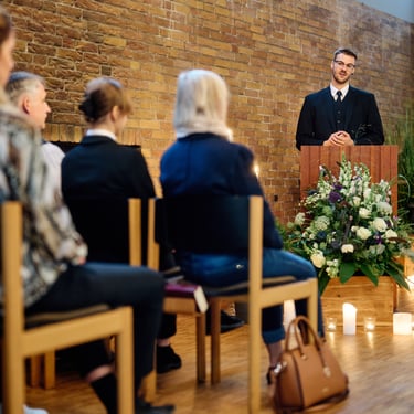 Als freier Redner finde ich für dich die passenden Worte, um bei einer Trauerfeier aus dem Leben der verstorbenen Person zu erzählen, damit wir uns gemeinsam erinnern können. Die Worte des Abschieds werden wir uns natürlich zusammen und auf ganz vielfältige Weise überlegen.